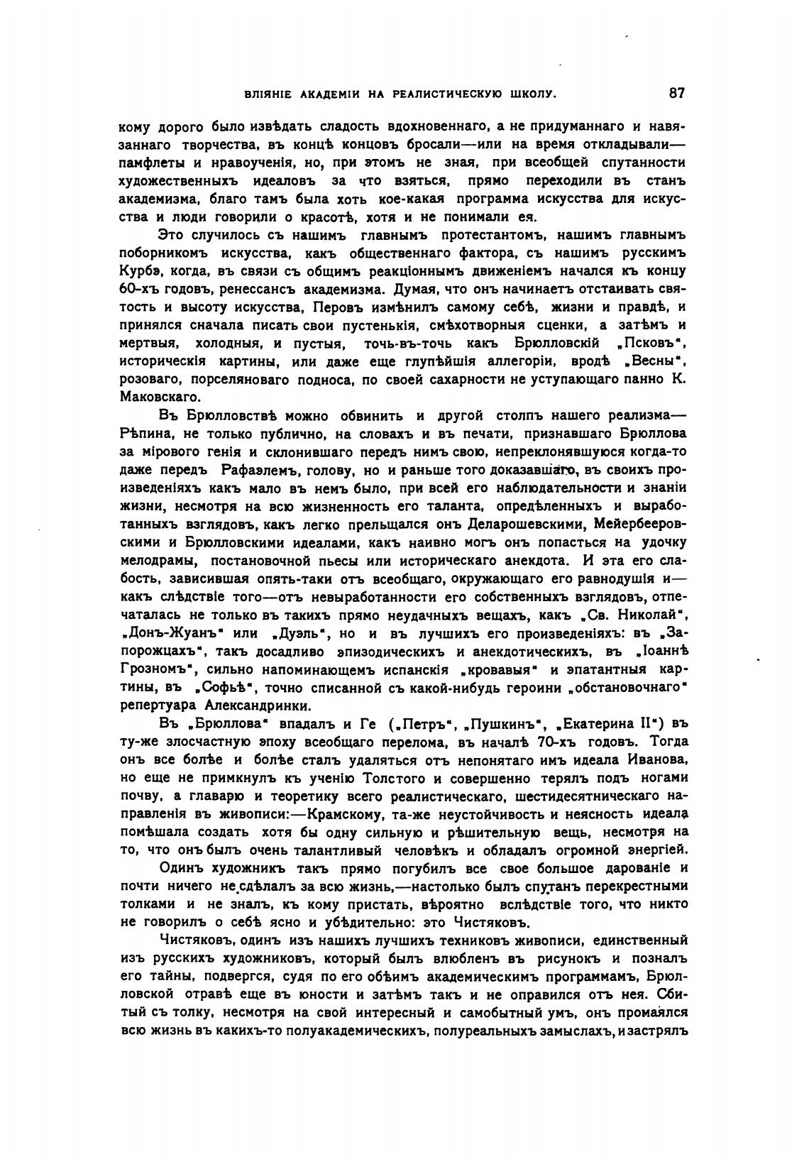 Чистяковъ, одинъ изъ нашихъ лучшихъ техниковъ живописи, единственный