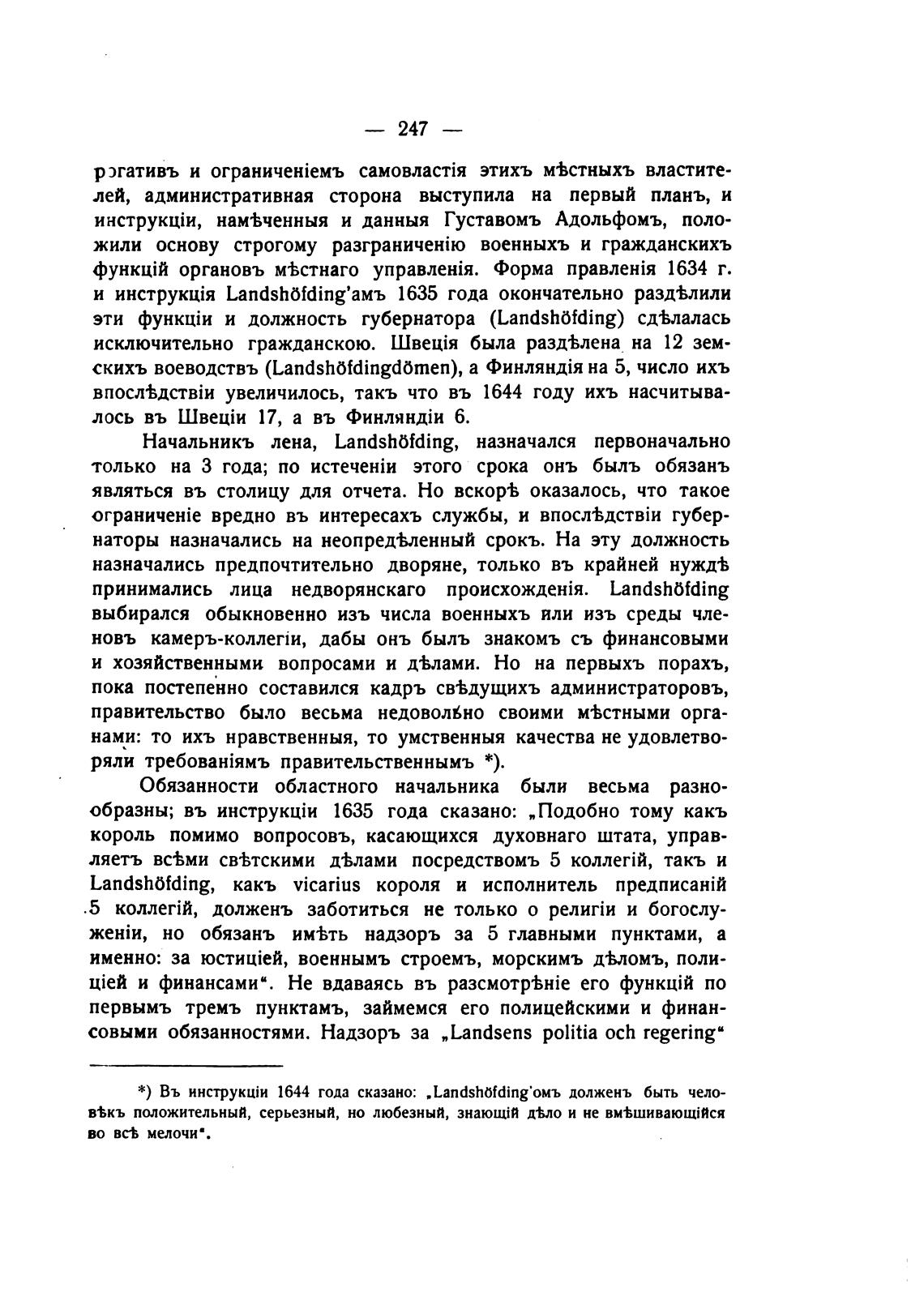 совыми обязанностями. Надзоръ за „Landsens politia och regering"