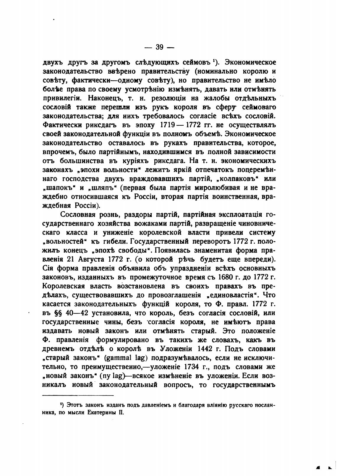 Фактически риксдагь въ эпоху 1719 — 1772 гг. не осуществлялъ