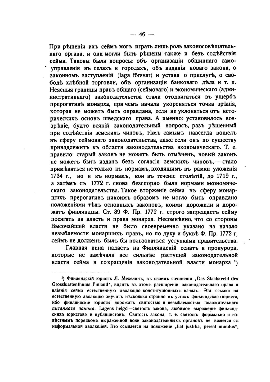 1) юристъ Л. Мехелинъ, въ своемъ .Das des
