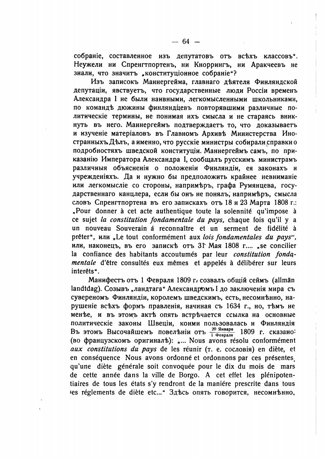 словъ Спренггпортена въ его запискахъ отљ 18 и 23 Марта 1808 г.: