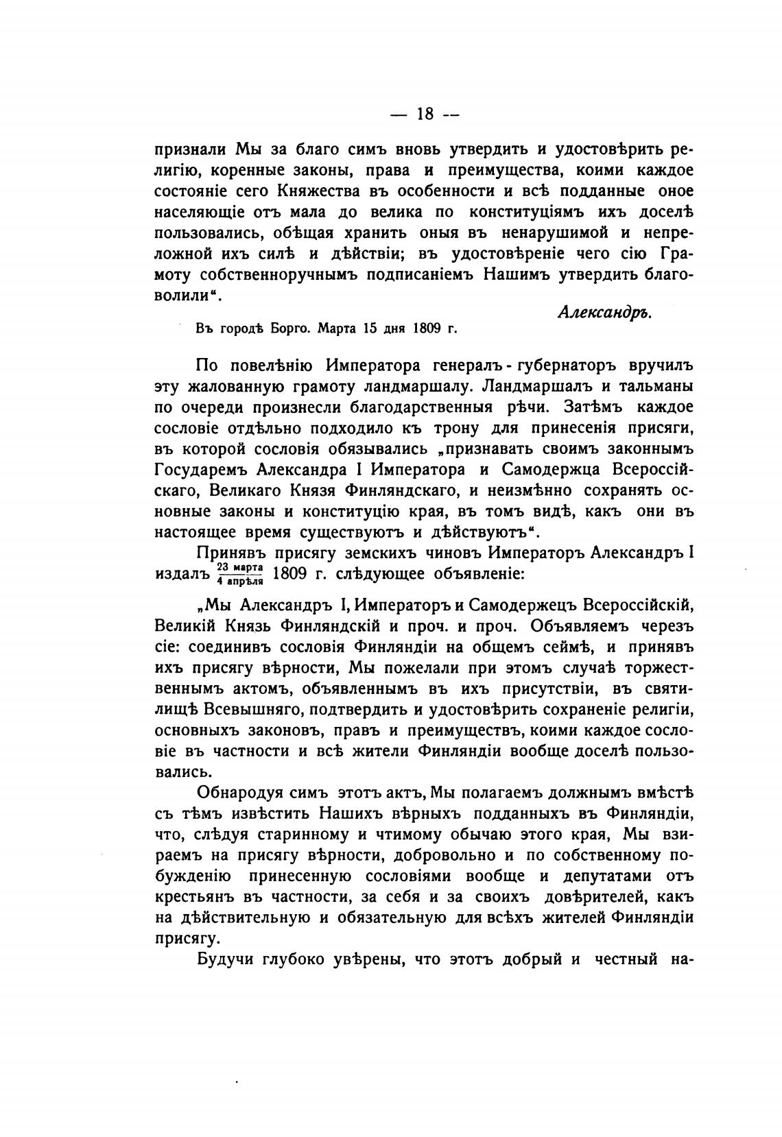 Обнародуя симъ этоть актъ, Мы полагаемъ должнымъ вм•ЬстЬ