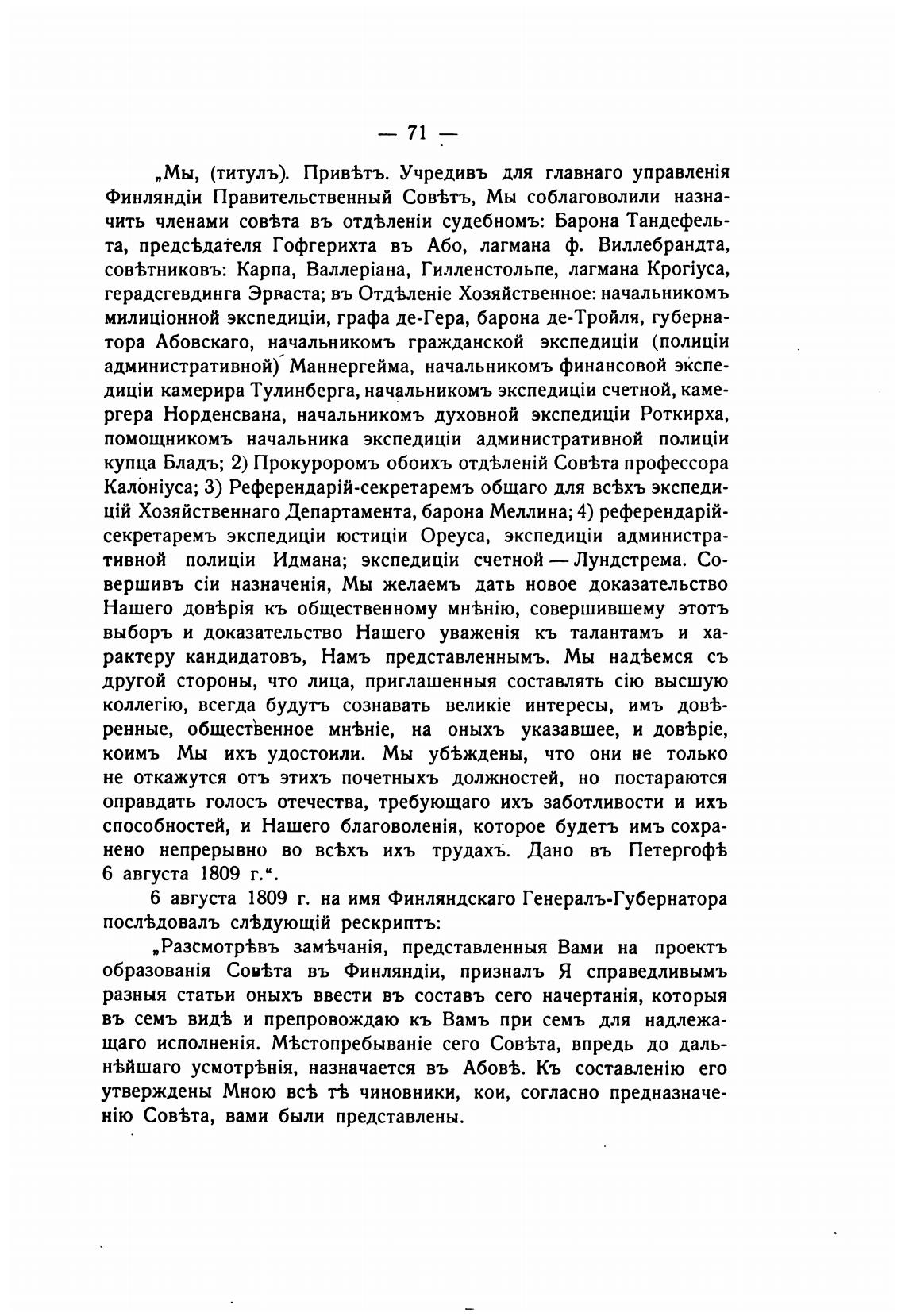 6 августа 1809 г. на имя Финляндскаго Генералъ-Губернатора