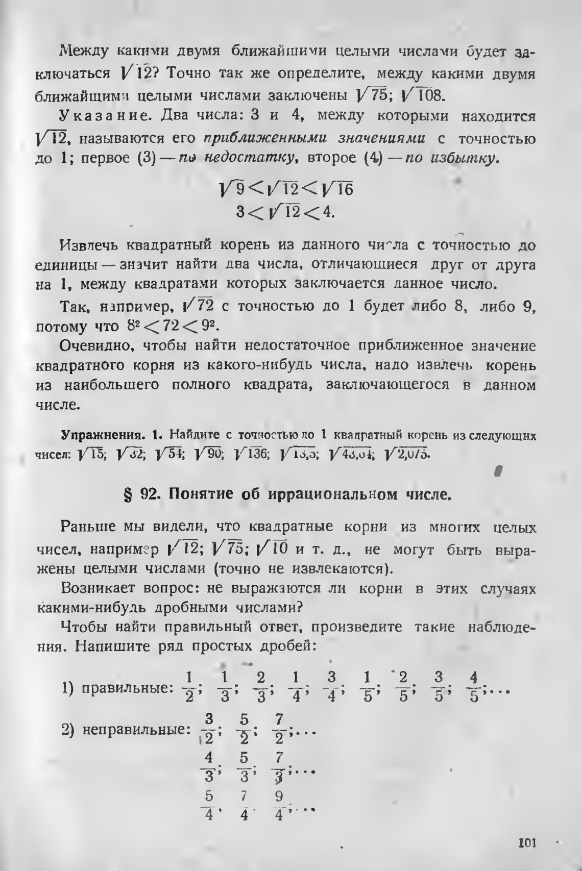 S 92. Понятие об иррациональном числе.