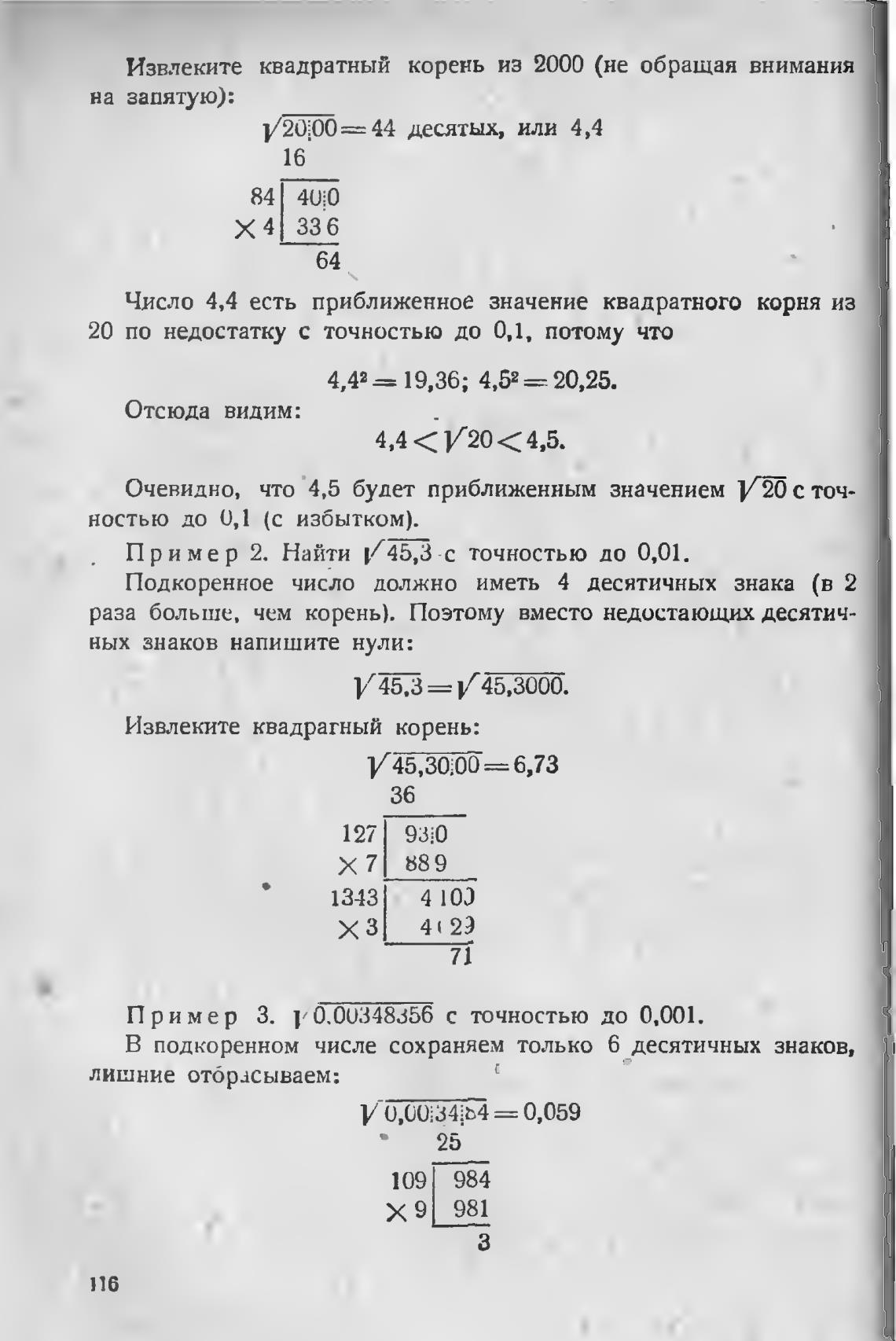 раза больше. чем корень). Поэтому вместо недостающих десятич-