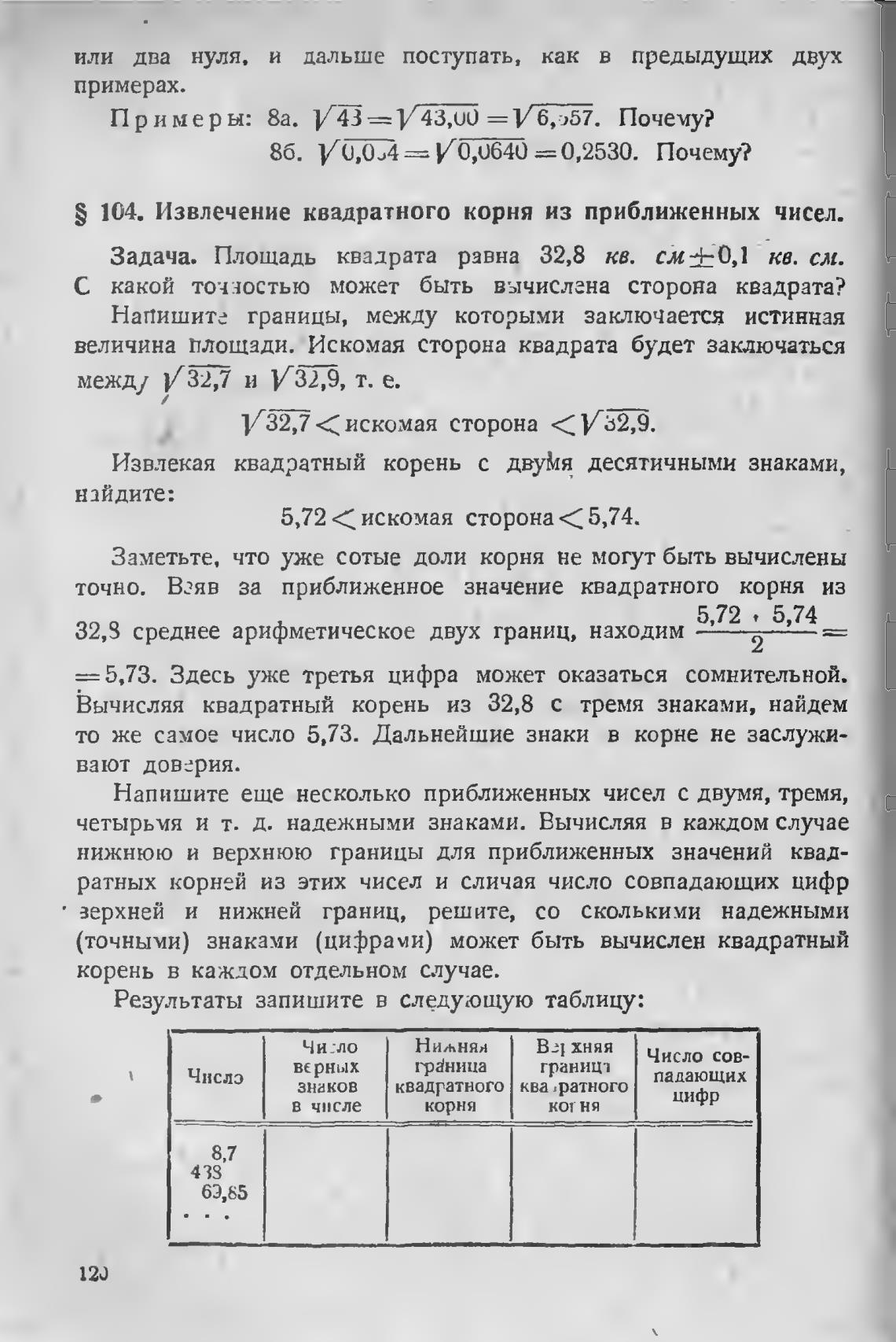 S 104. Извлечение квадратного корня из приближенных чисел.