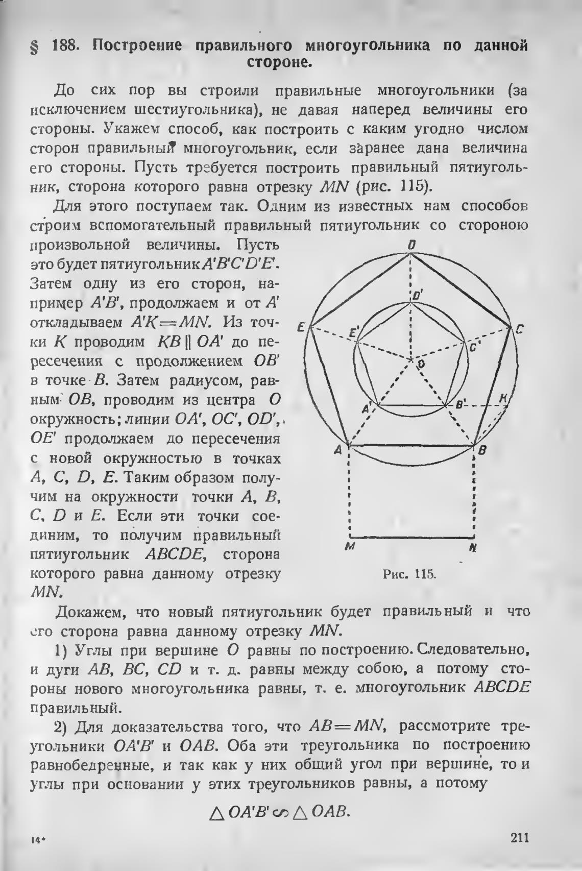 S 188. Построение правильного многоугольника по данной