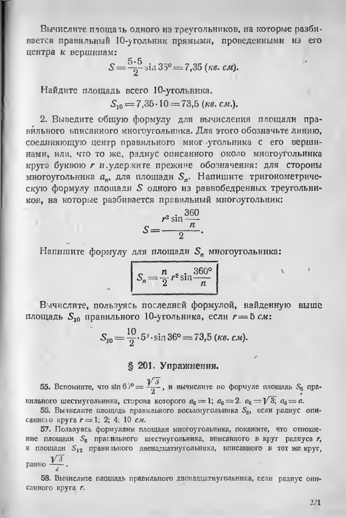 многоугольника ап, для площади Sn. Напишите тригономегриче-