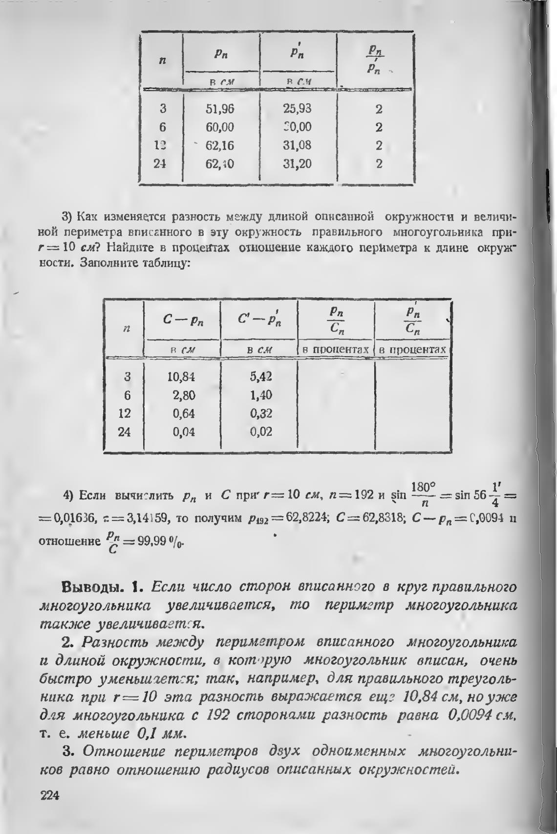 Выводы. 1. Если число сторон вписанного в круг правильного