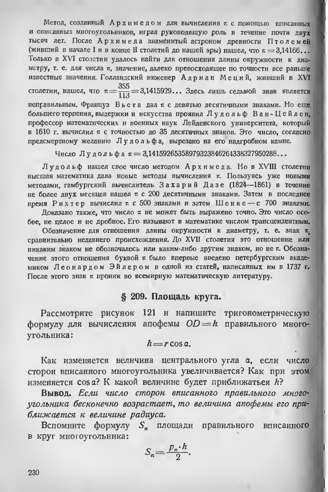 S 209. Площадь круга.