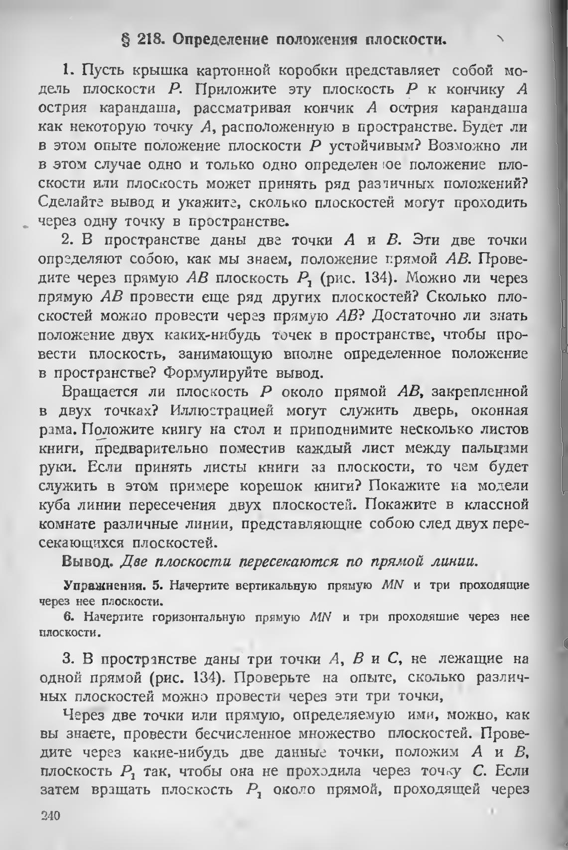 218. Определение положения плоскости.