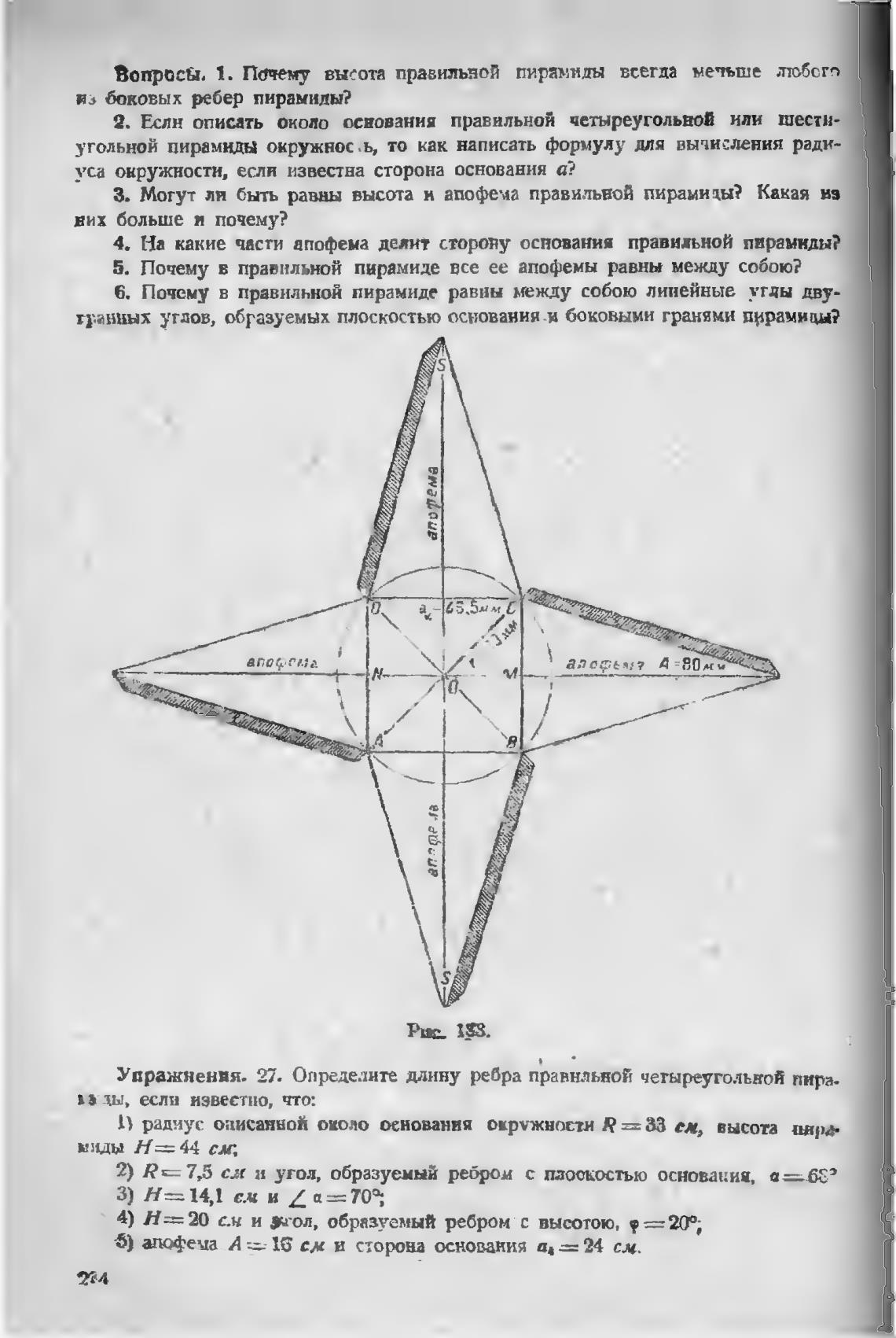 Упражнения. 27. Определите длину ребра правнльной четыреугольвой пира.