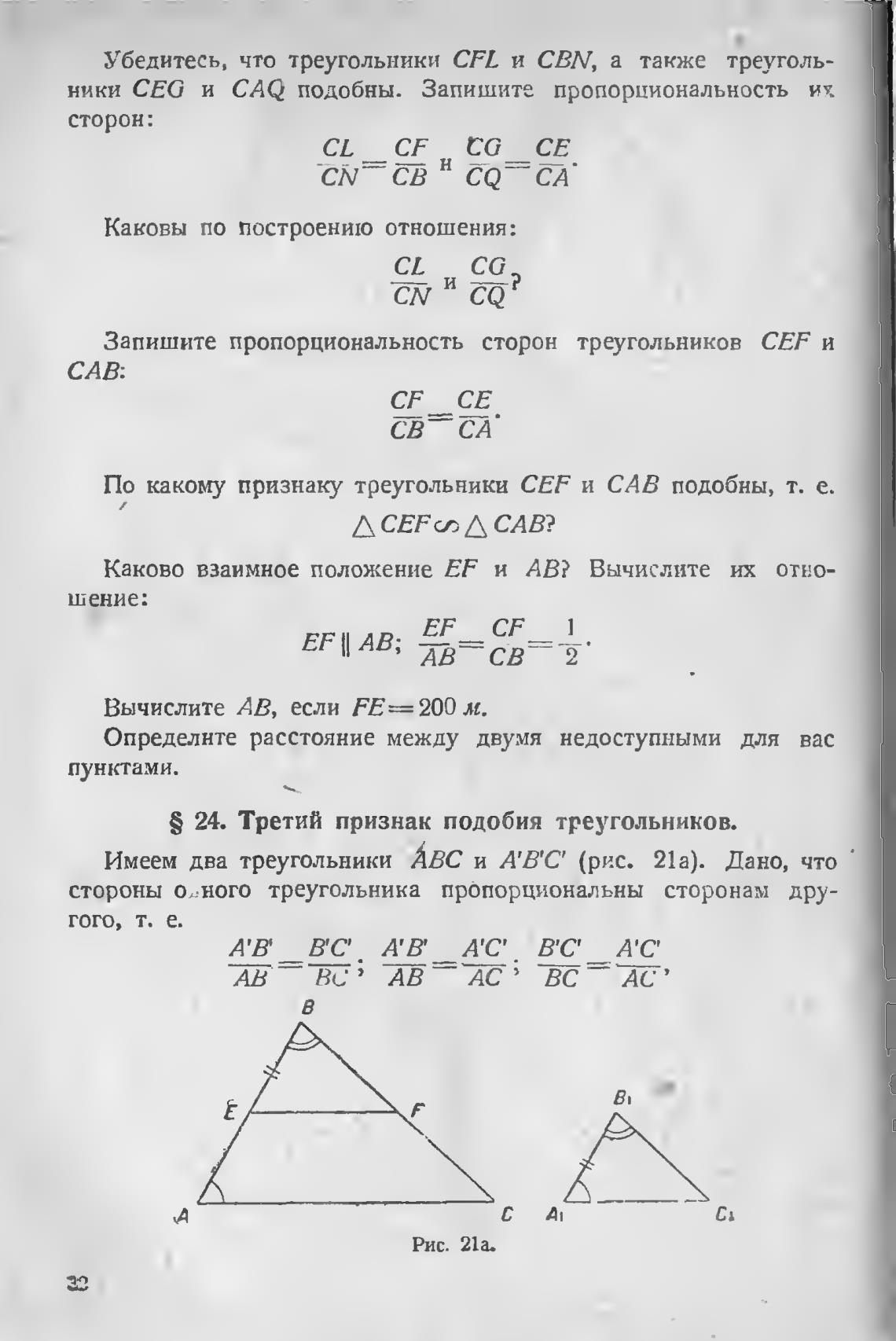 Имеем два треугольники АВС и А'В'С' (рис. 21 а). Дано, что