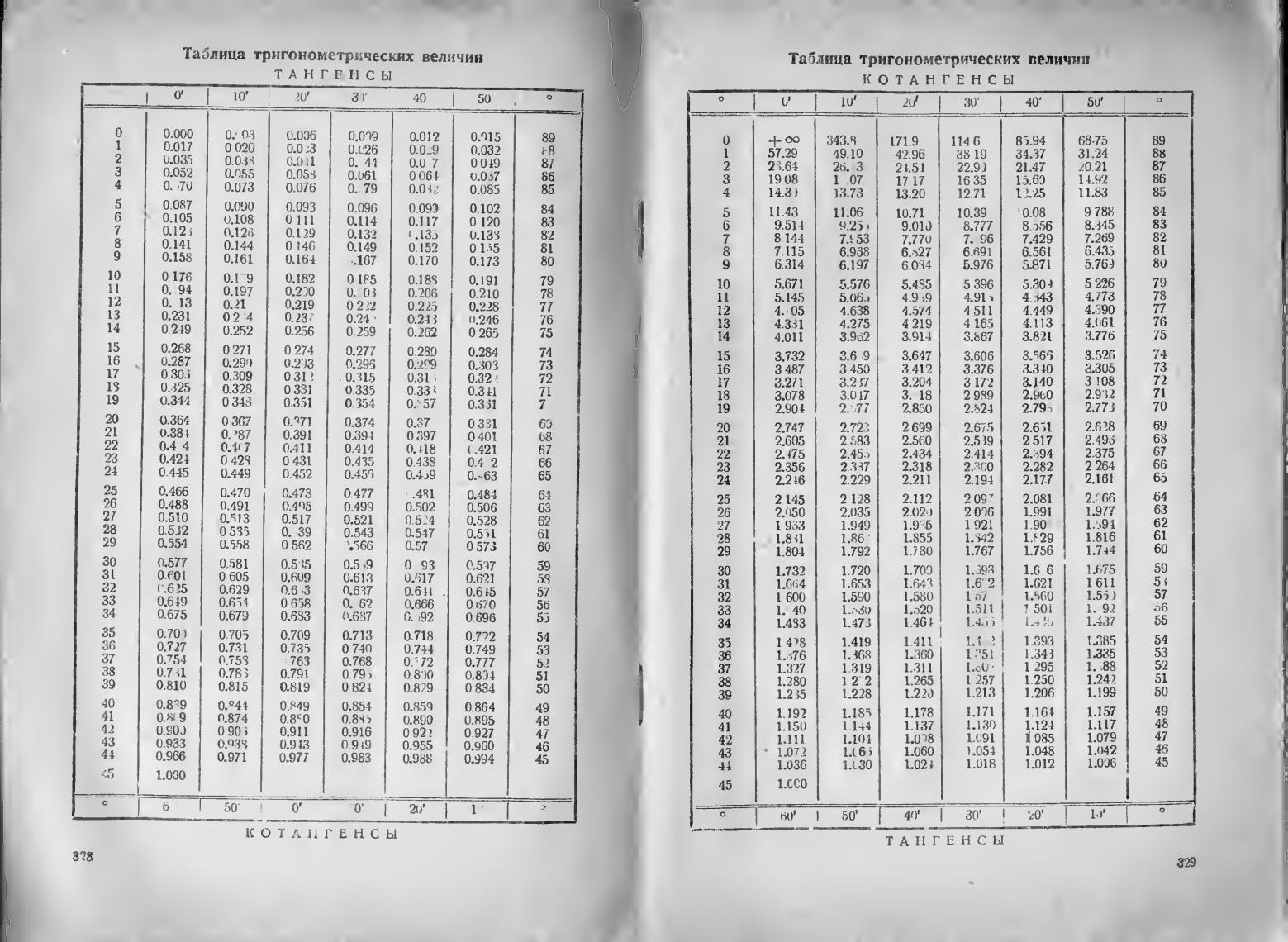 Таблица тригонометрических величин