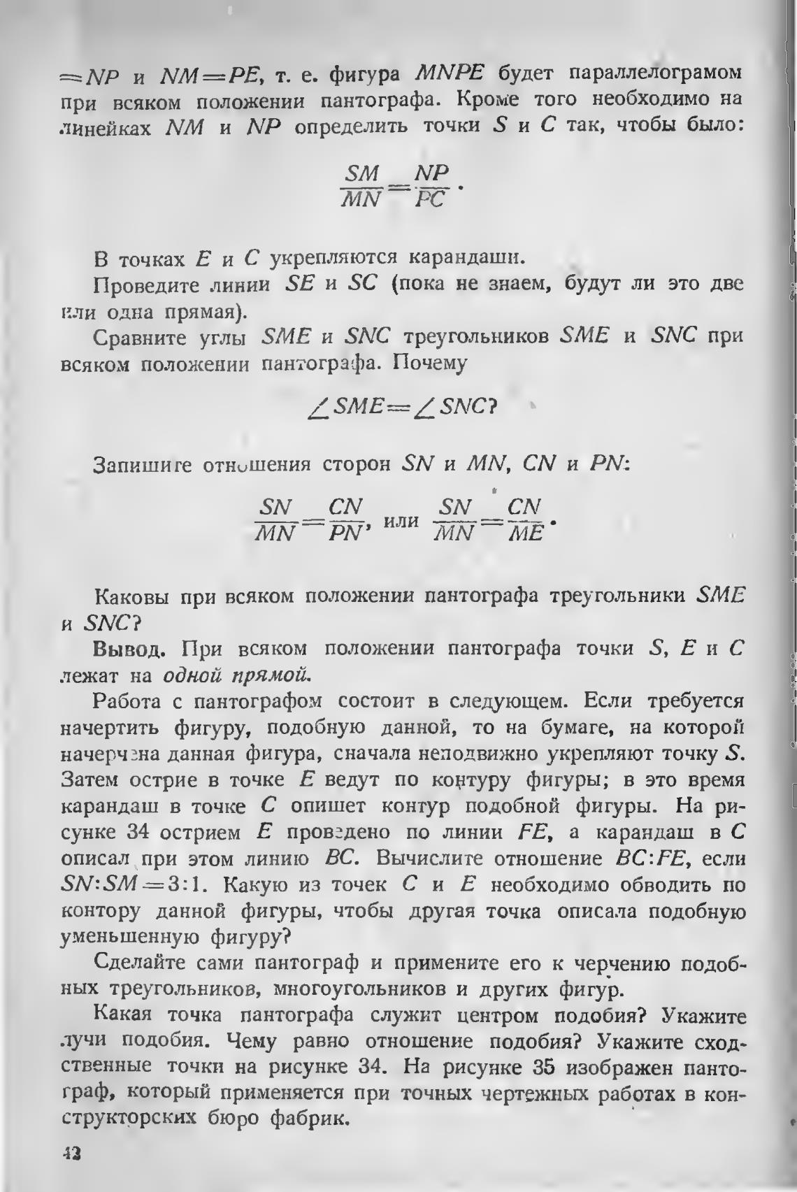 Каковы при всяком положении пантографа треугольники SME