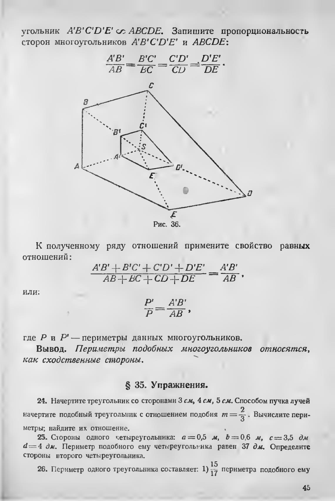 Вывод. Пери.иетры подобных многоугольников