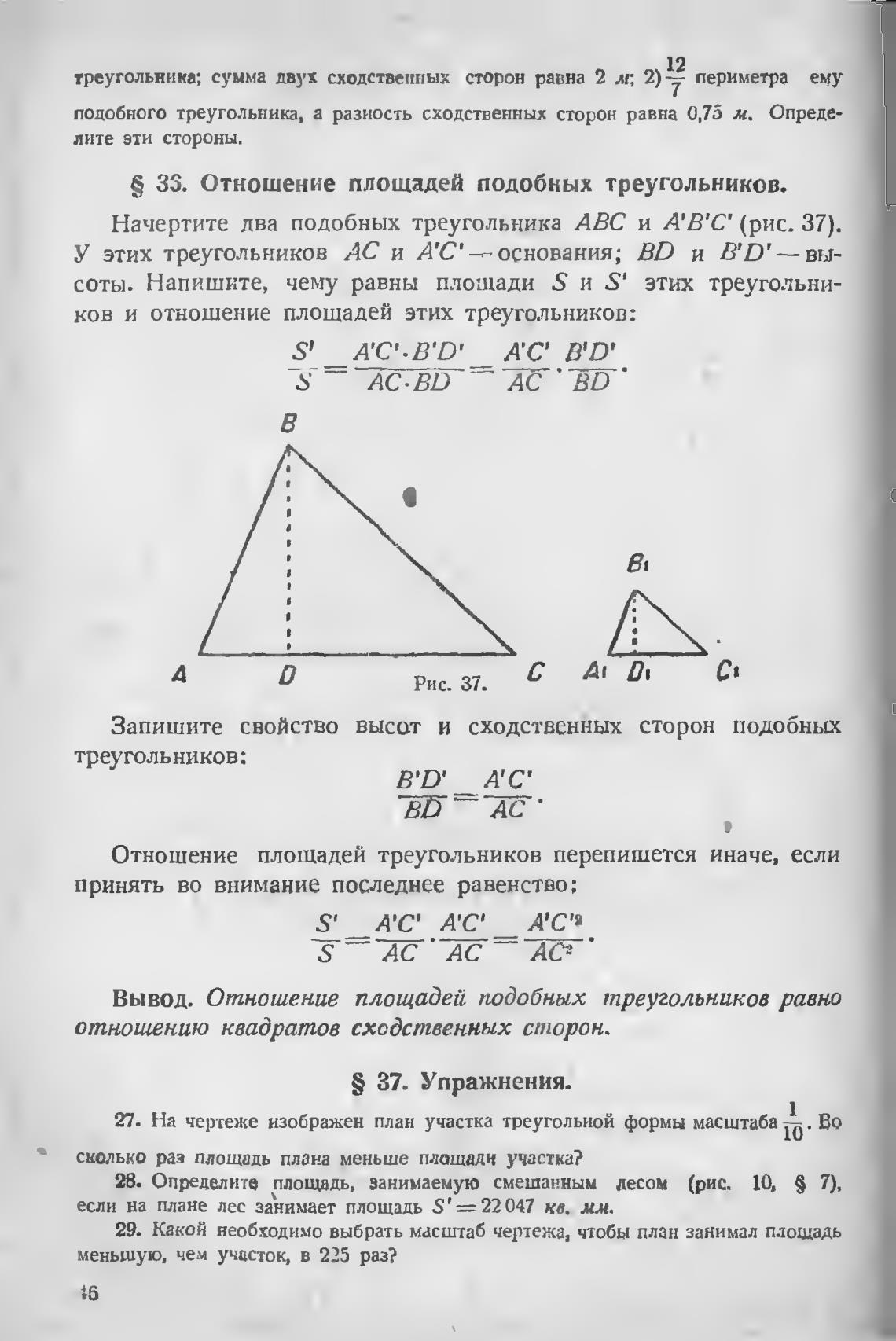 Начертите два подобных треугольника АВС и А'В'С' (рис. 37).