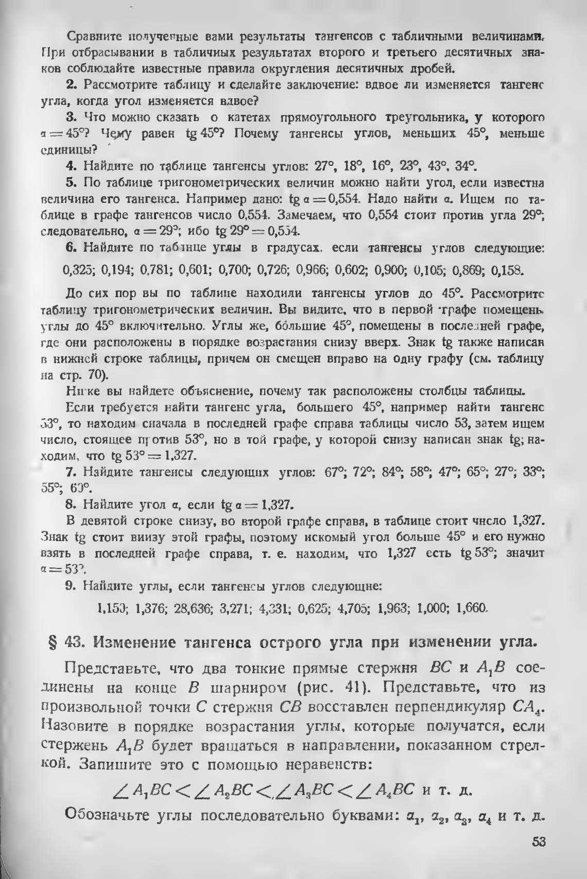 S 43. Изменение тангенса острого угла при изменении угла.