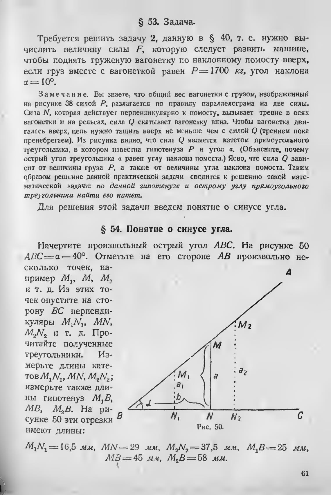 S 54. Понятие о синусе угла.