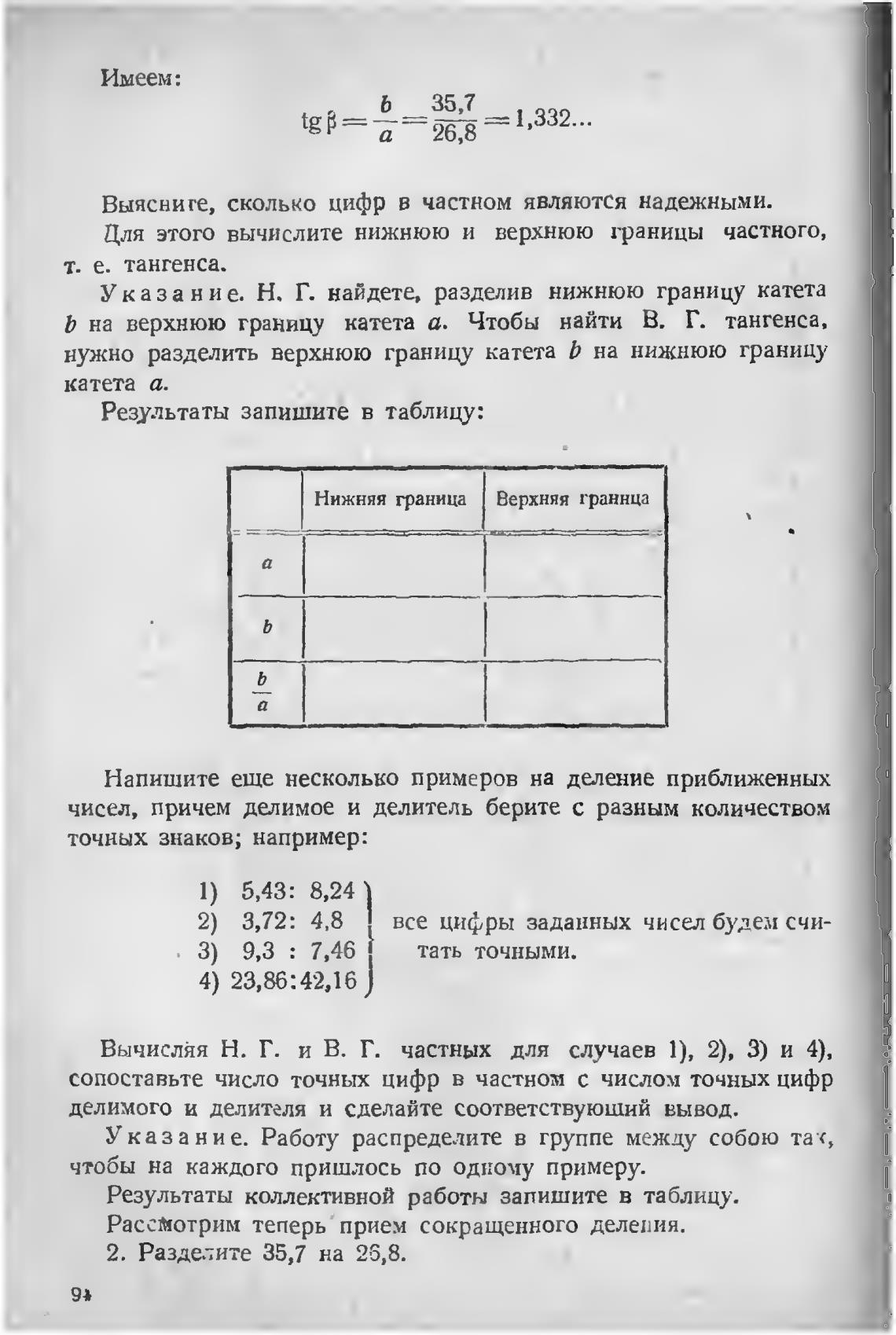 сопоставьте число точных цифр в частном с числом точных цифр