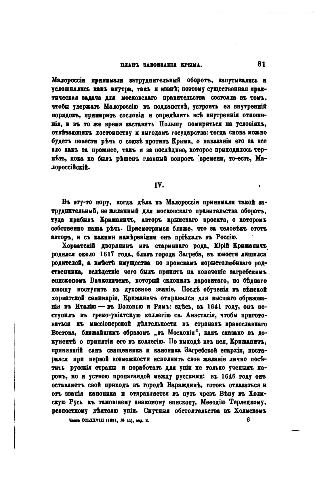 туда прибыль Крижаничъ, авторъ врымсваго проекта, о вотриъ
