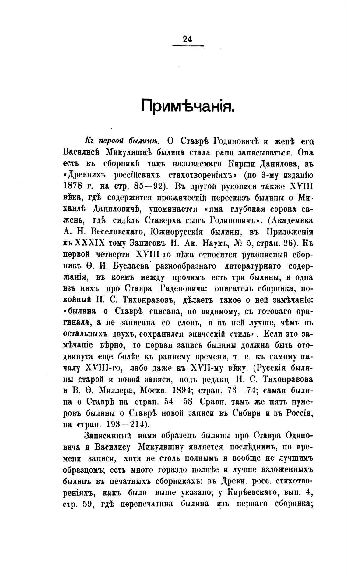 былинъ въ печатныхъ сборникахъ: въ )(ревн. росс. стихотво-