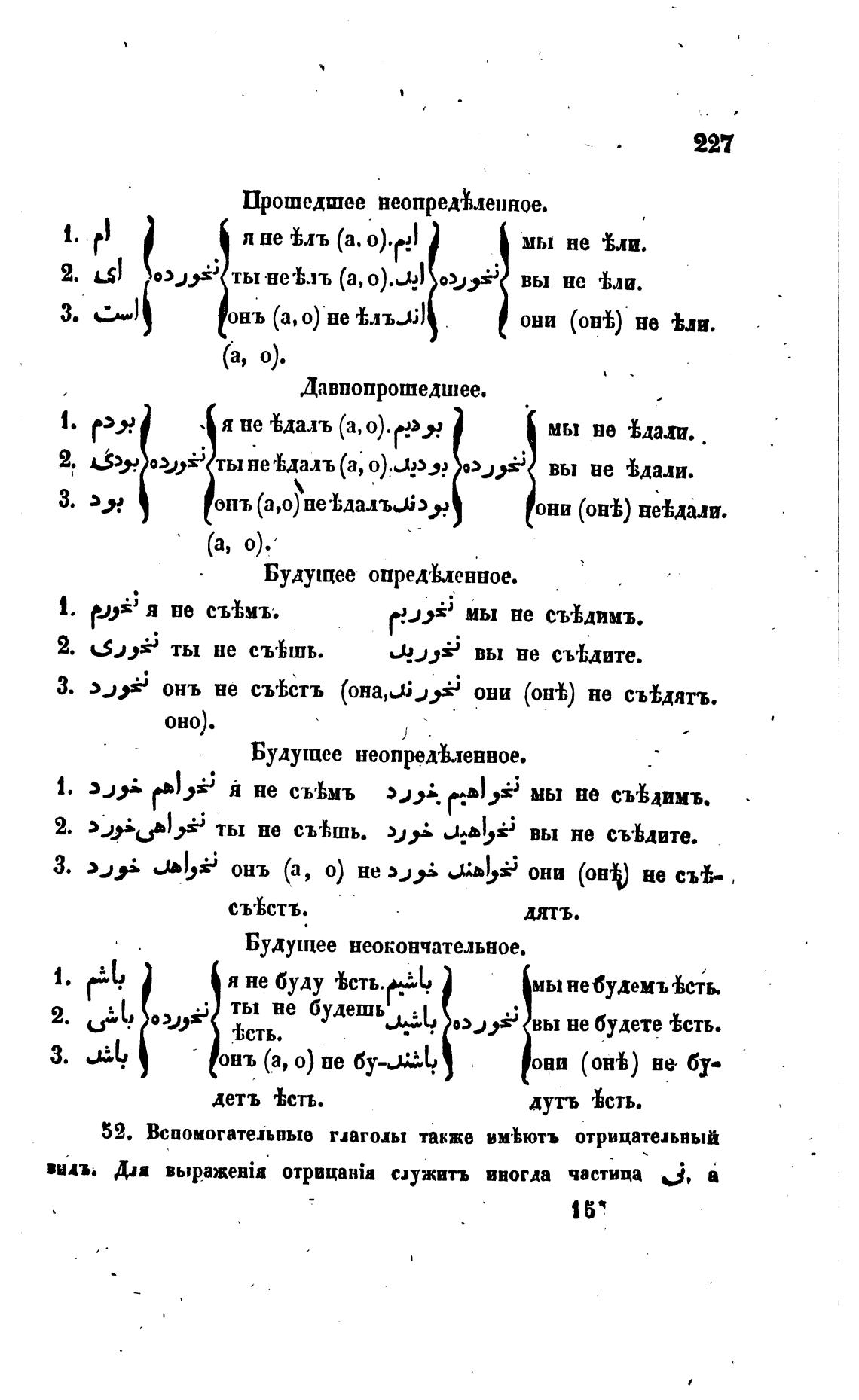 52. Вспомогатехьвые глаголы также им•вютъ отрицательный