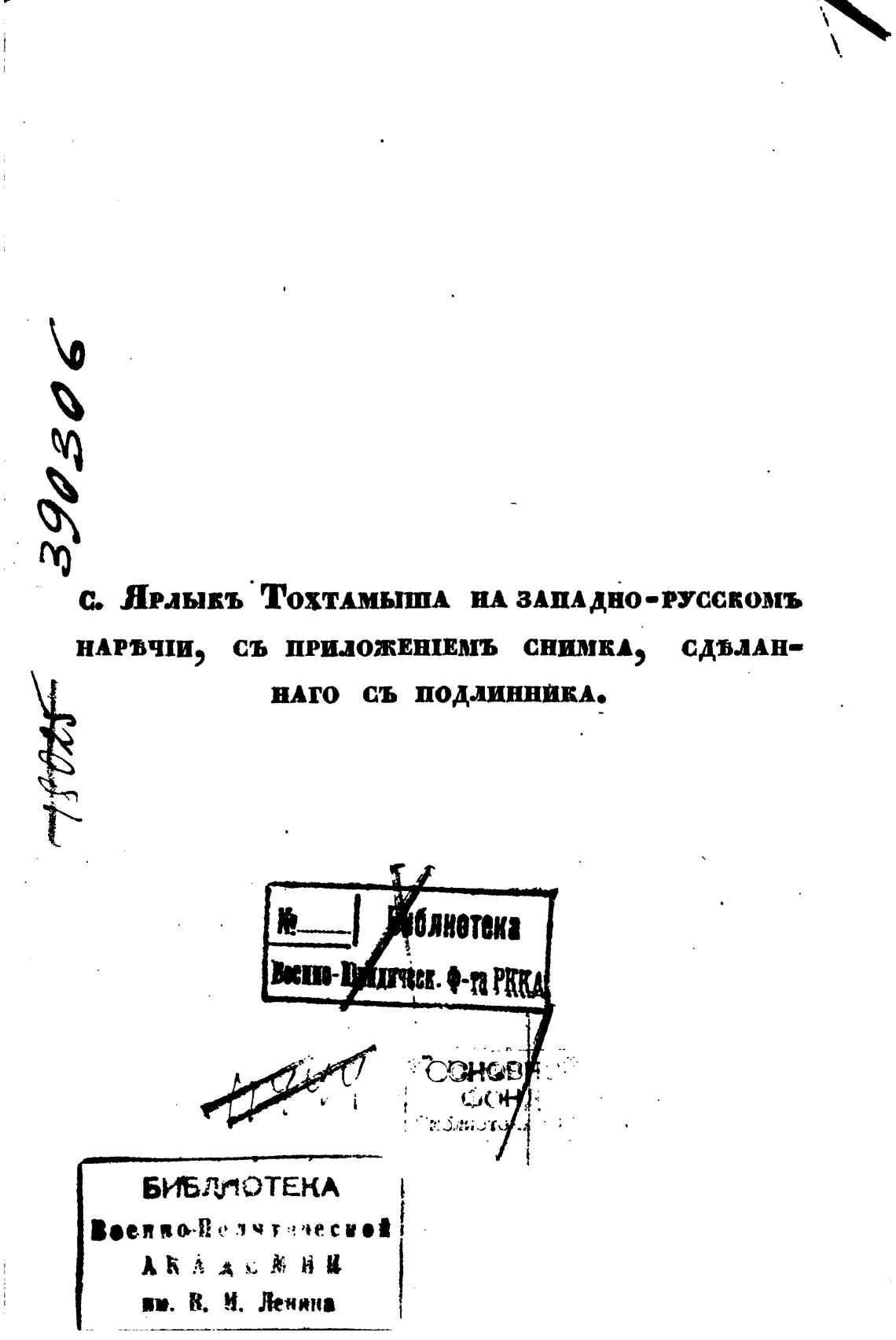 С. ЯРЛЫКЪ ТОХТАМЫША НА ЗАПАДНО-РУССКОМЬ
