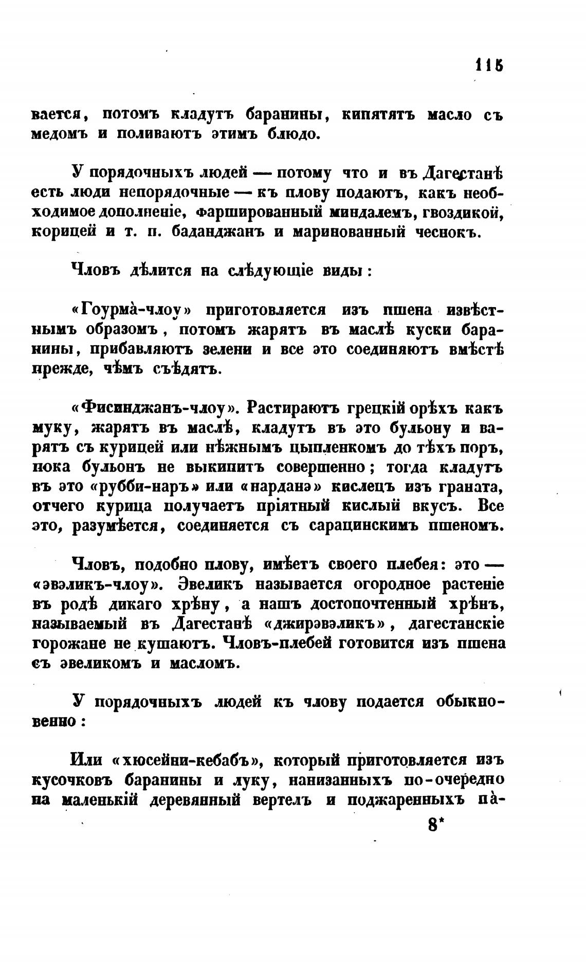 корицей и т. п. баданджанъ и маринованный чеснокъ.