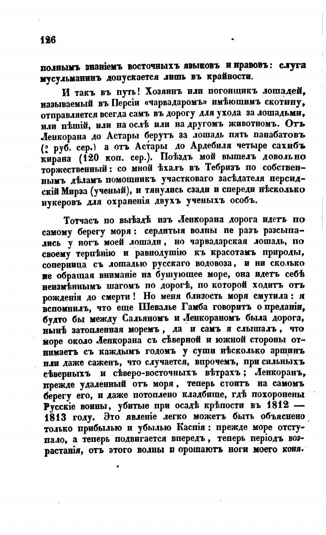 Ленкорана до Астары берутъ ва лошадь пять панабатовъ