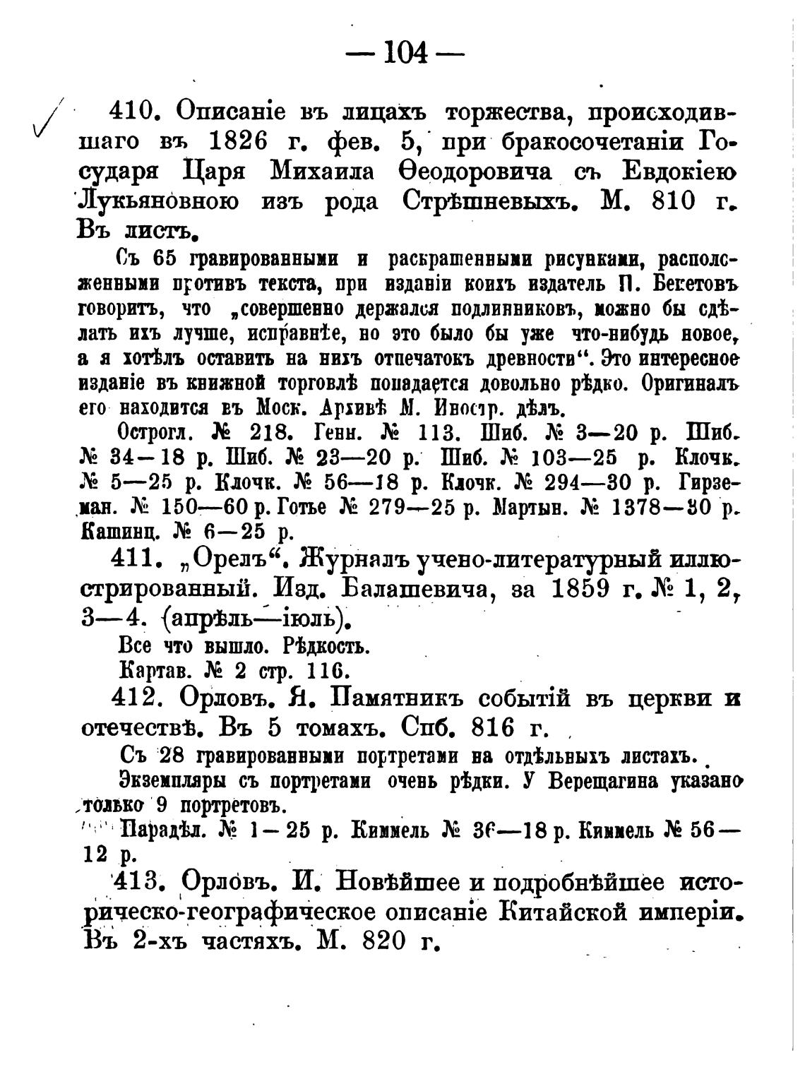 411. „Орелъ“. Журналь учено-дитературный иллю-