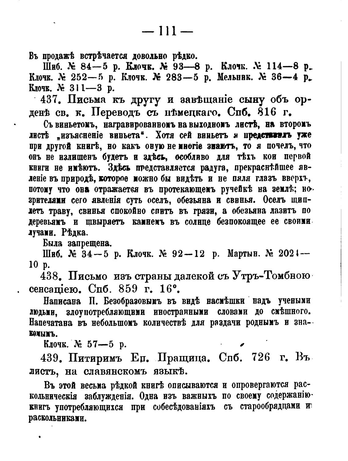 439. Питиримъ Еџ. Пращица. СПб. 726 г. Въ