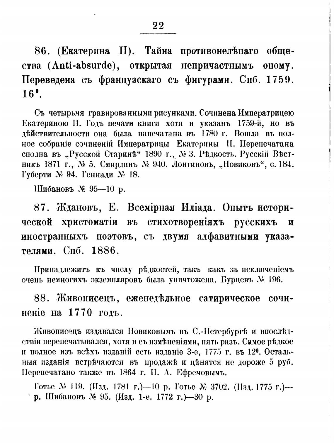 р. Шибановъ Ху 95. (Изд. 1-е. 1772 г. )—30 р.