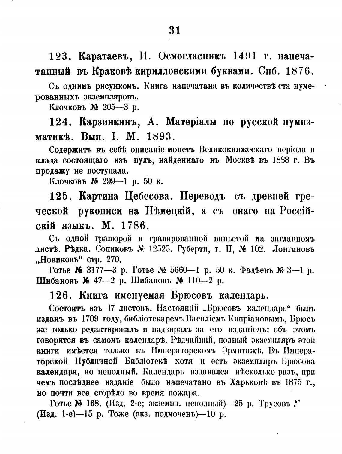 124. Карзинкинъ, А. по русской нумиз-