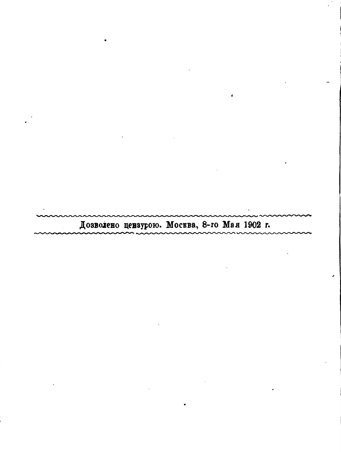 Дозволено цензурою. Мосвва, 8-ro Маа 1902 т.