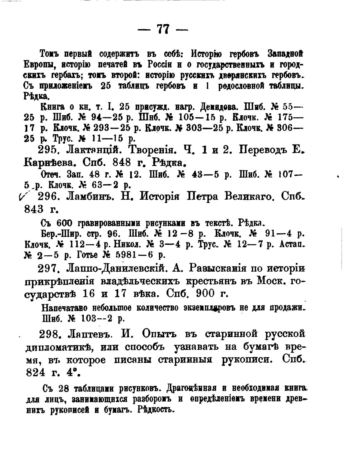 6” • 296. Ламбинъ. Н. Петра Великаго. СПб-