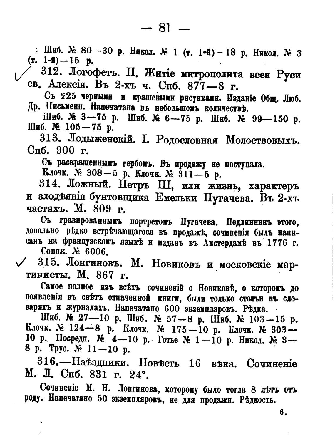 .v/ 315. Лонгиновъ. М. Новиковъ и Mock0B0kie мар-