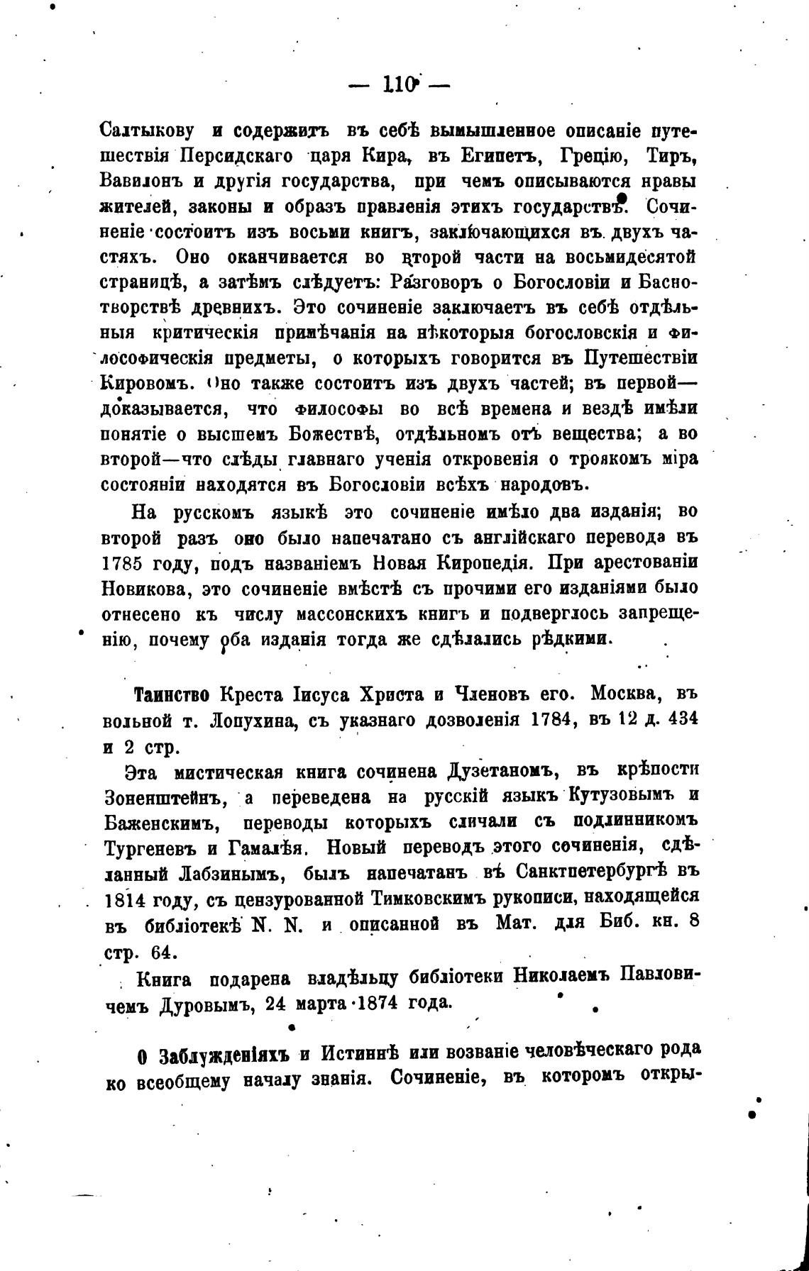 0 заблужден1яхъ и Истиннгђ ихи B03BaHie чалов±ческаго рода