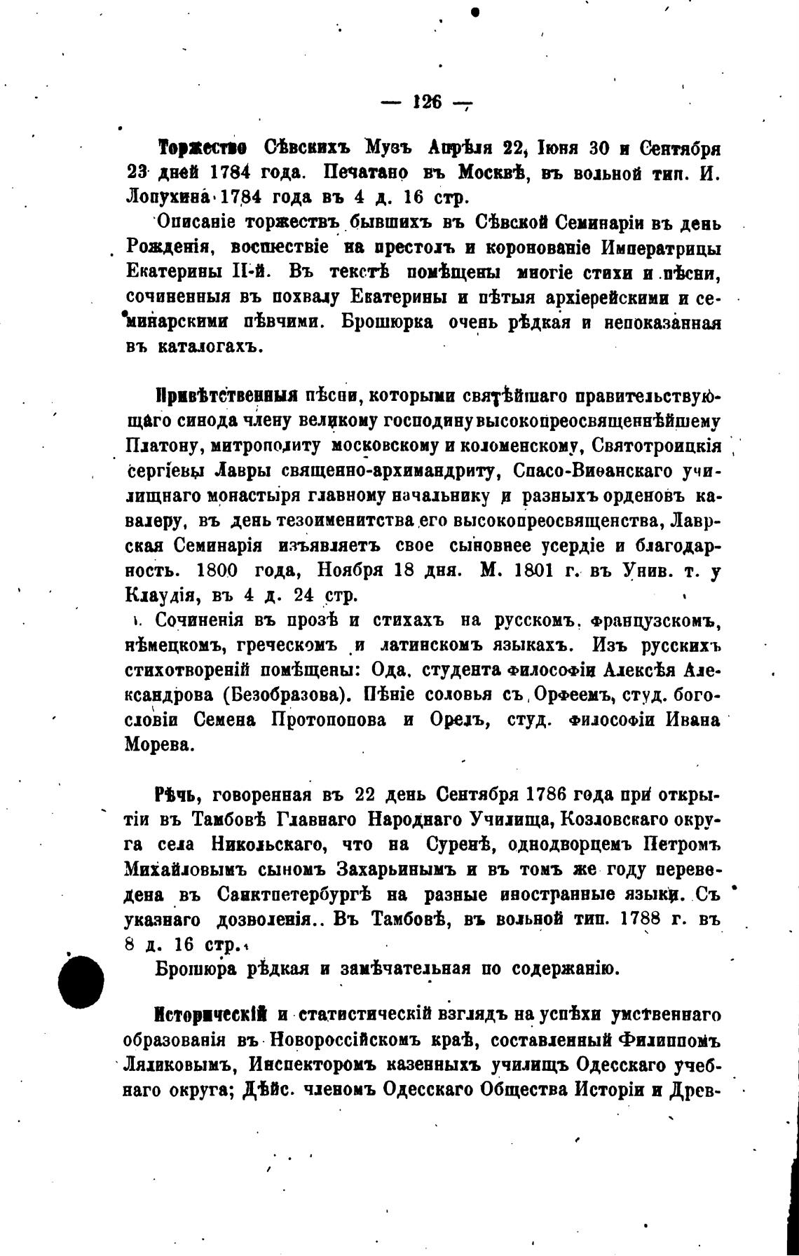 23 дней 1784 года. Печатано въ Москв%, въ вольной тип. И.