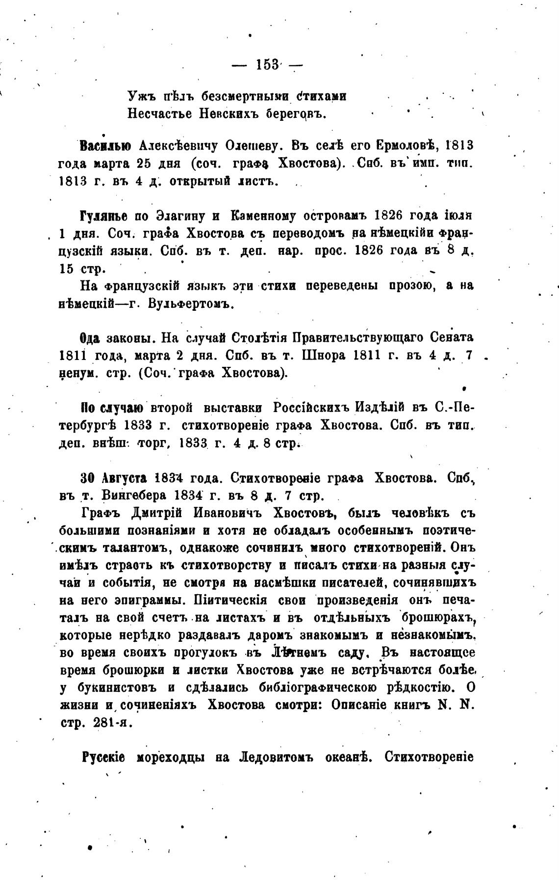 тербург'Ь 1833 г. графа Хвостова. СПб. въ тип.