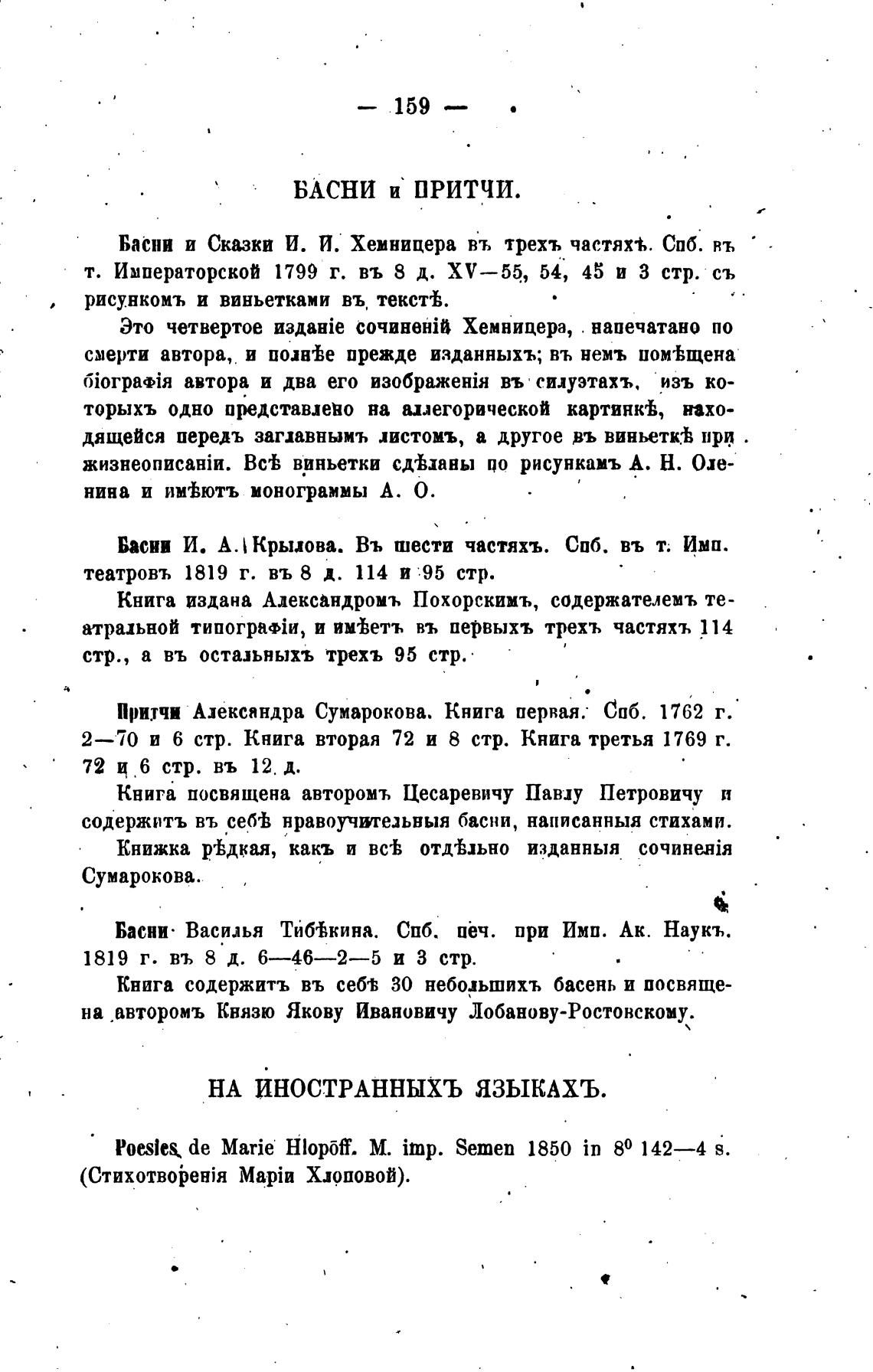 Басни и Сказки И. И. Хемницера въ трехъ частях±,. СПб. въ