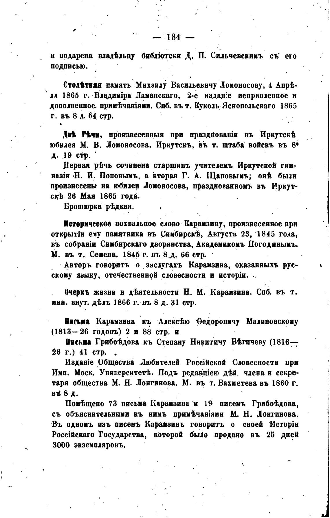 Пом%щено 73 письма Карамзина и 19 писемъ Грибо%дова,