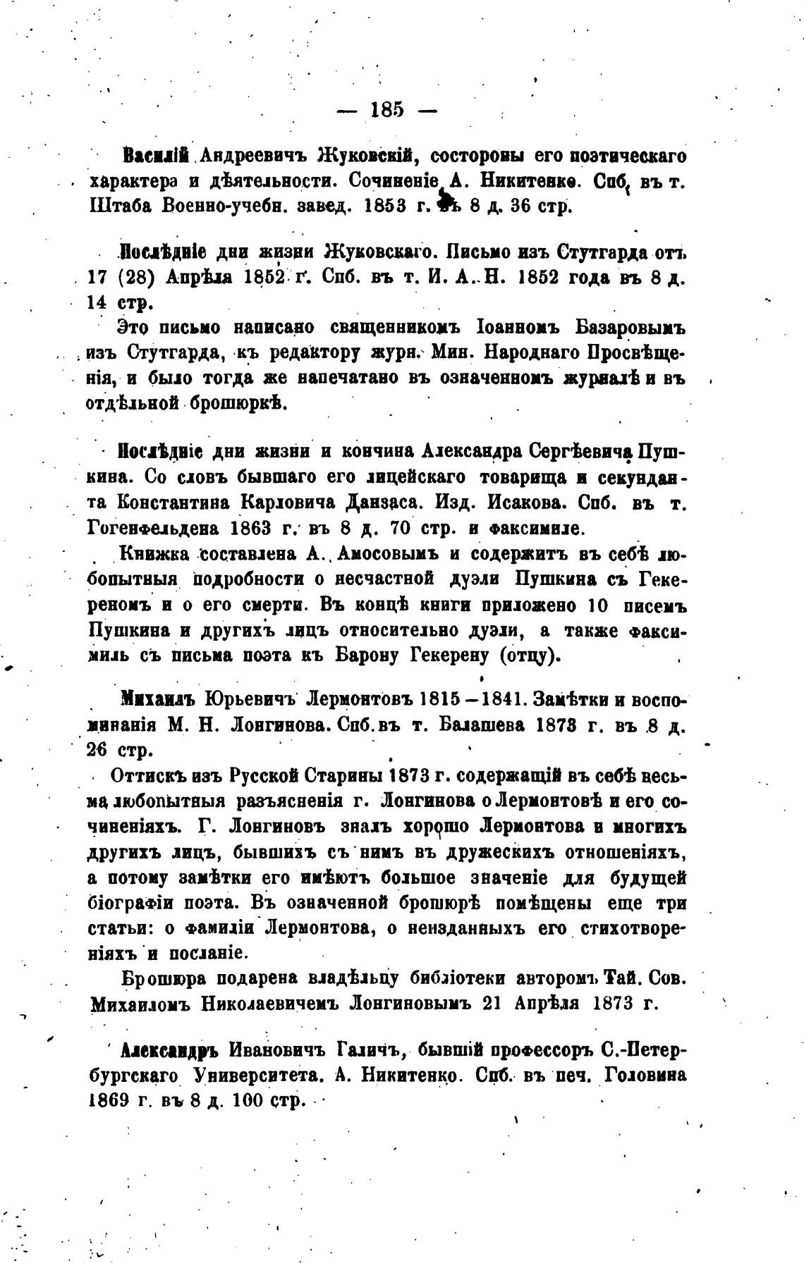 бургскаго Университета. А. Никитенко. СПб. въ веч. Головина