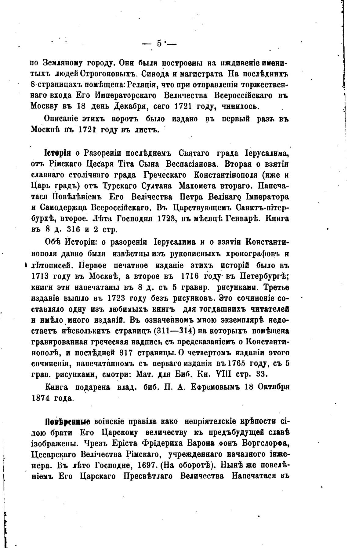 Книга подарена взад. биб. П. А. Ефремовымъ 18 Октября