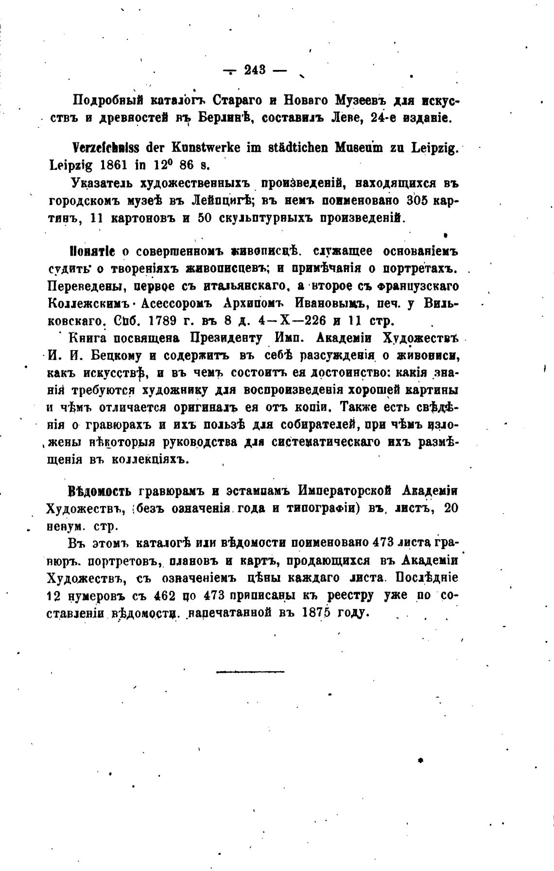 Подробный катазбгь Стараго и Новаго Музеевъ для искус-