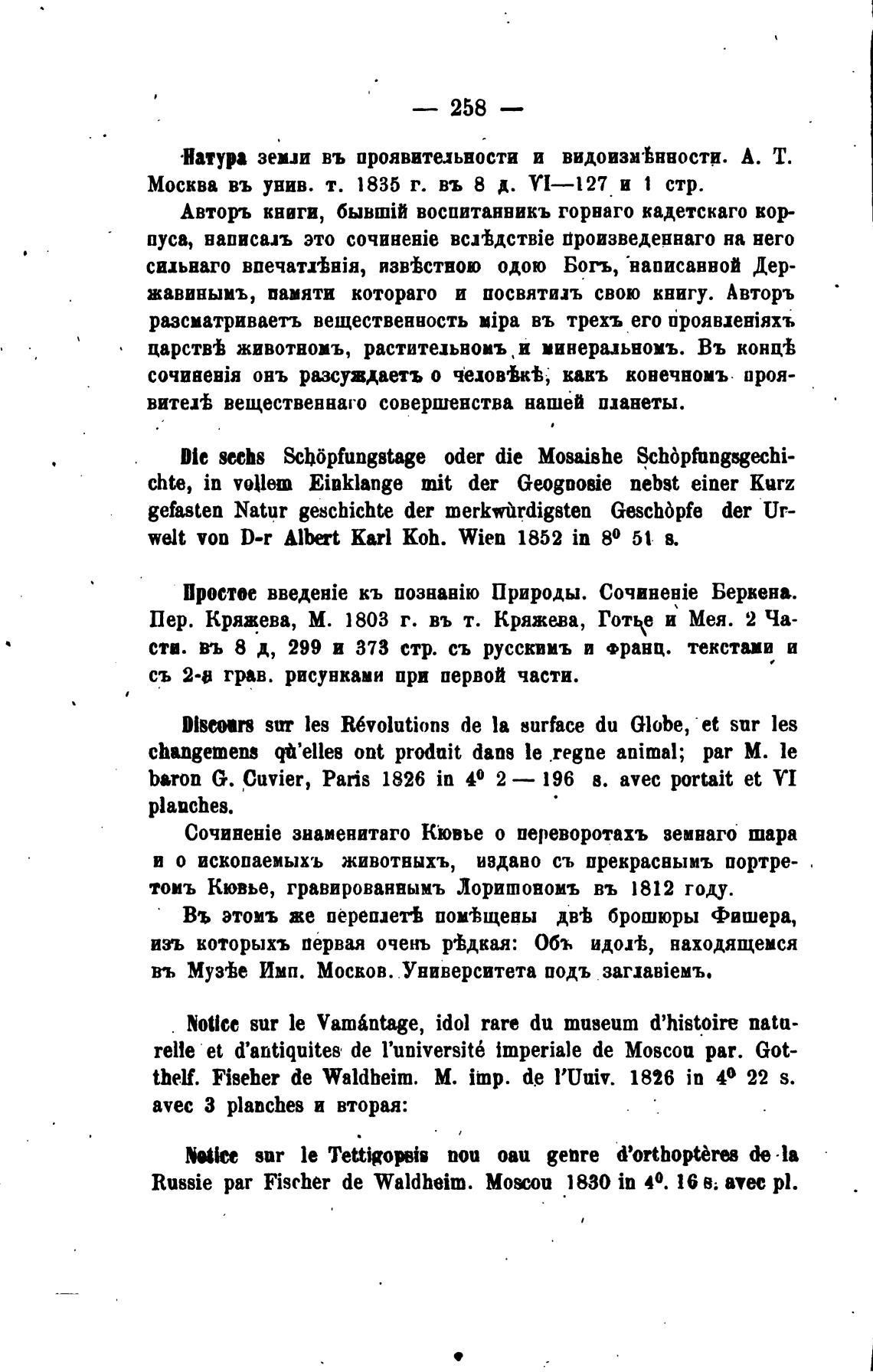 Russie раг Fischer de Waldheim. 1830 in 40. 16 в; avec р).