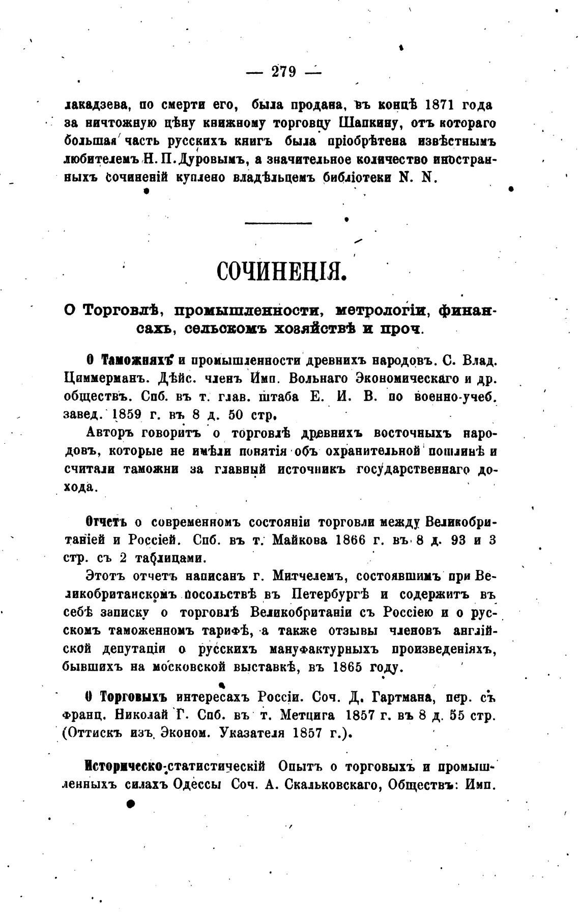 0 Торговыхъ интересахъ Соч. Д. Гартмана, пер.