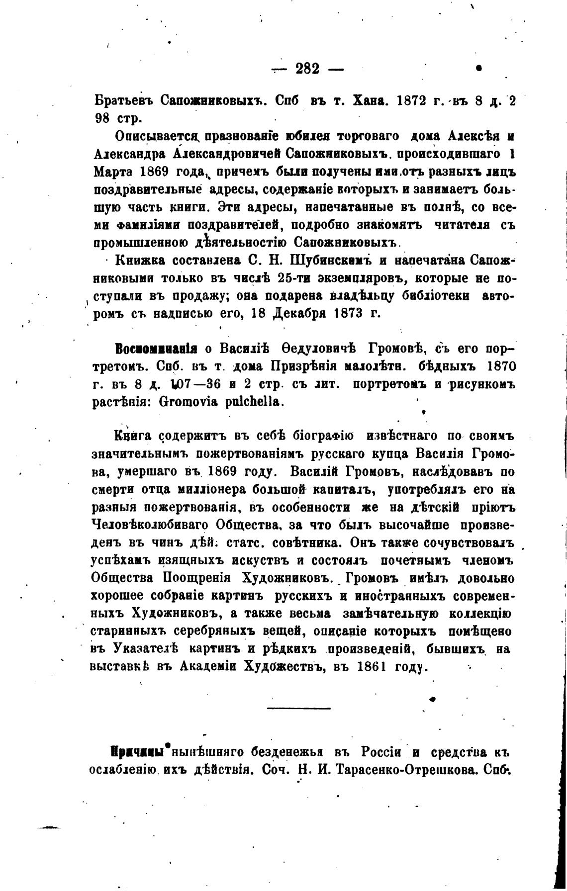 Вратьевљ Сапожниковыхъ. СПб въ т. Хана. 1872 г. „въ 8 д. -2