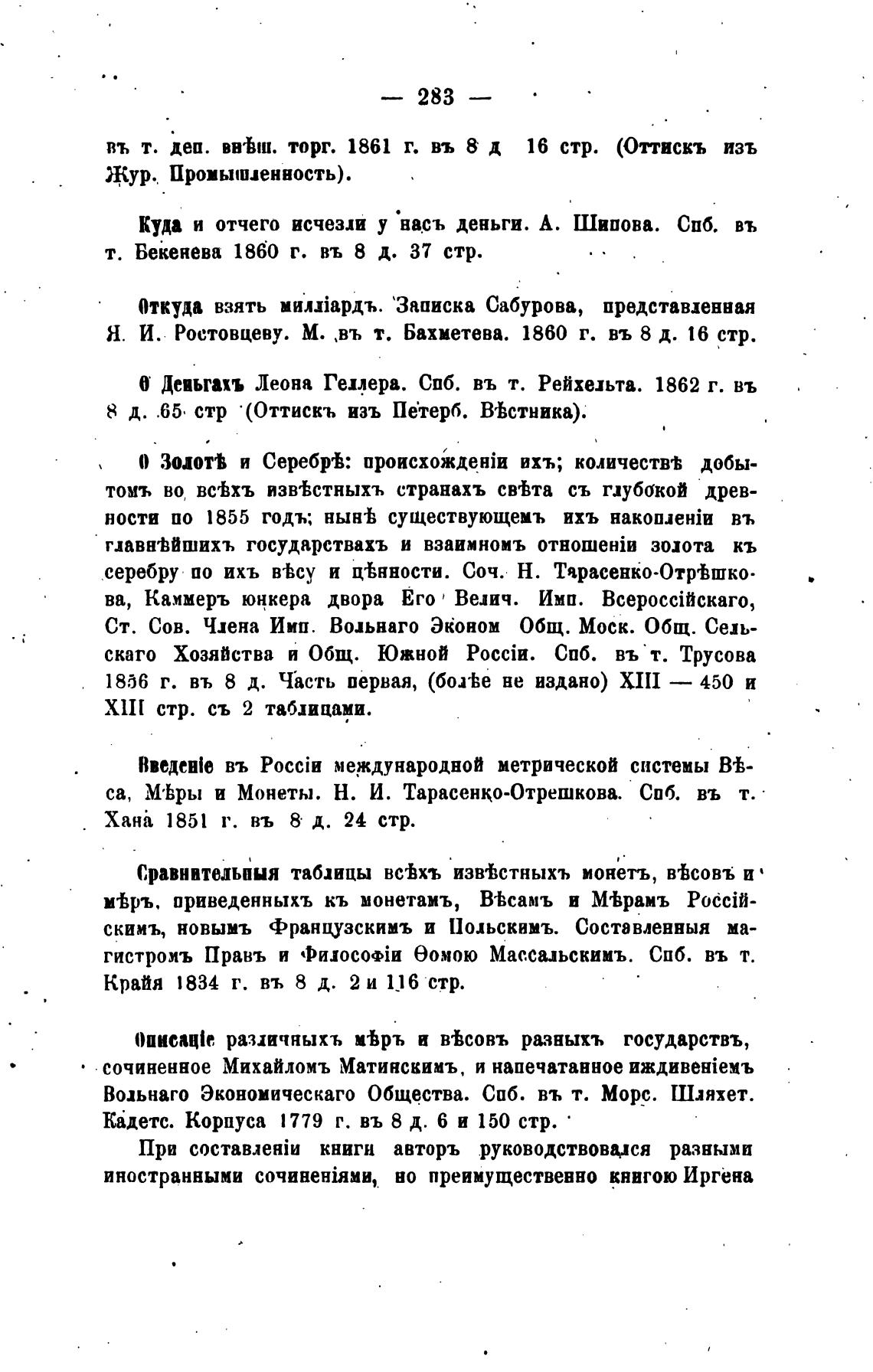 са, М'Ьры и Монеты. Н. И. Тарасенко-Отрешкова. СПб. въ т.