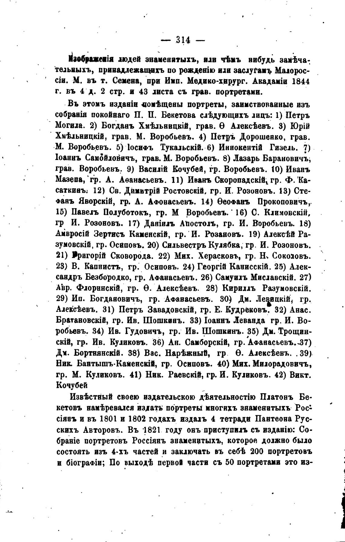 1оаннъ Самбйиойичъ, грав. М. Воробьевъ. 8) Лазарь Барановичъ,
